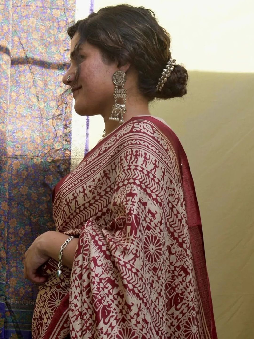 KALINI presents this elegant Maroon Sarees crafted for Women. Made using premium Not Available, this outfit features a refined Not Available silhouette, a stylish Not Available neckline and Not Available. The Not Available hemline and Not Available length complete the look. Perfect for Festive wear.