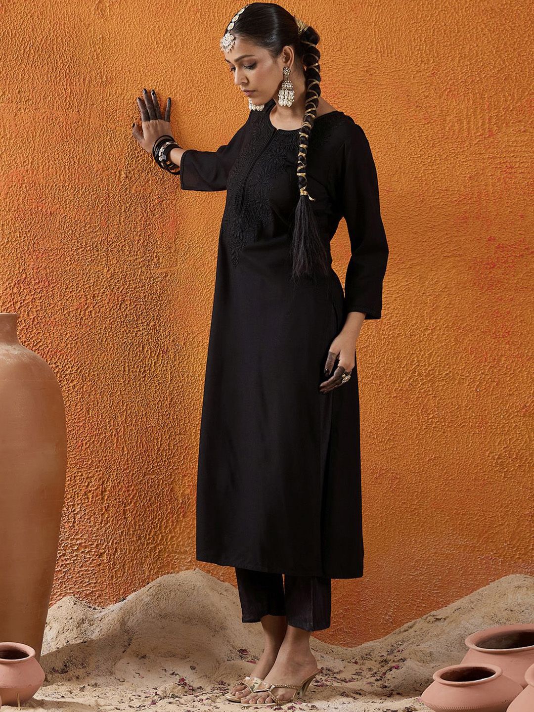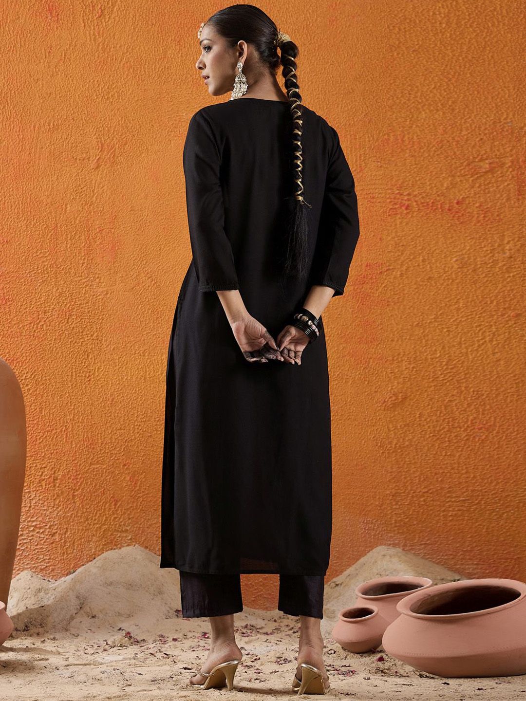 Indo Era presents this elegant Black Kurtas crafted for Women. Made using premium Not Available, this outfit features a refined Not Available silhouette, a stylish Not Available neckline and Three-Quarter Sleeves. The Not Available hemline and Not Available length complete the look. Perfect for Not Available wear.