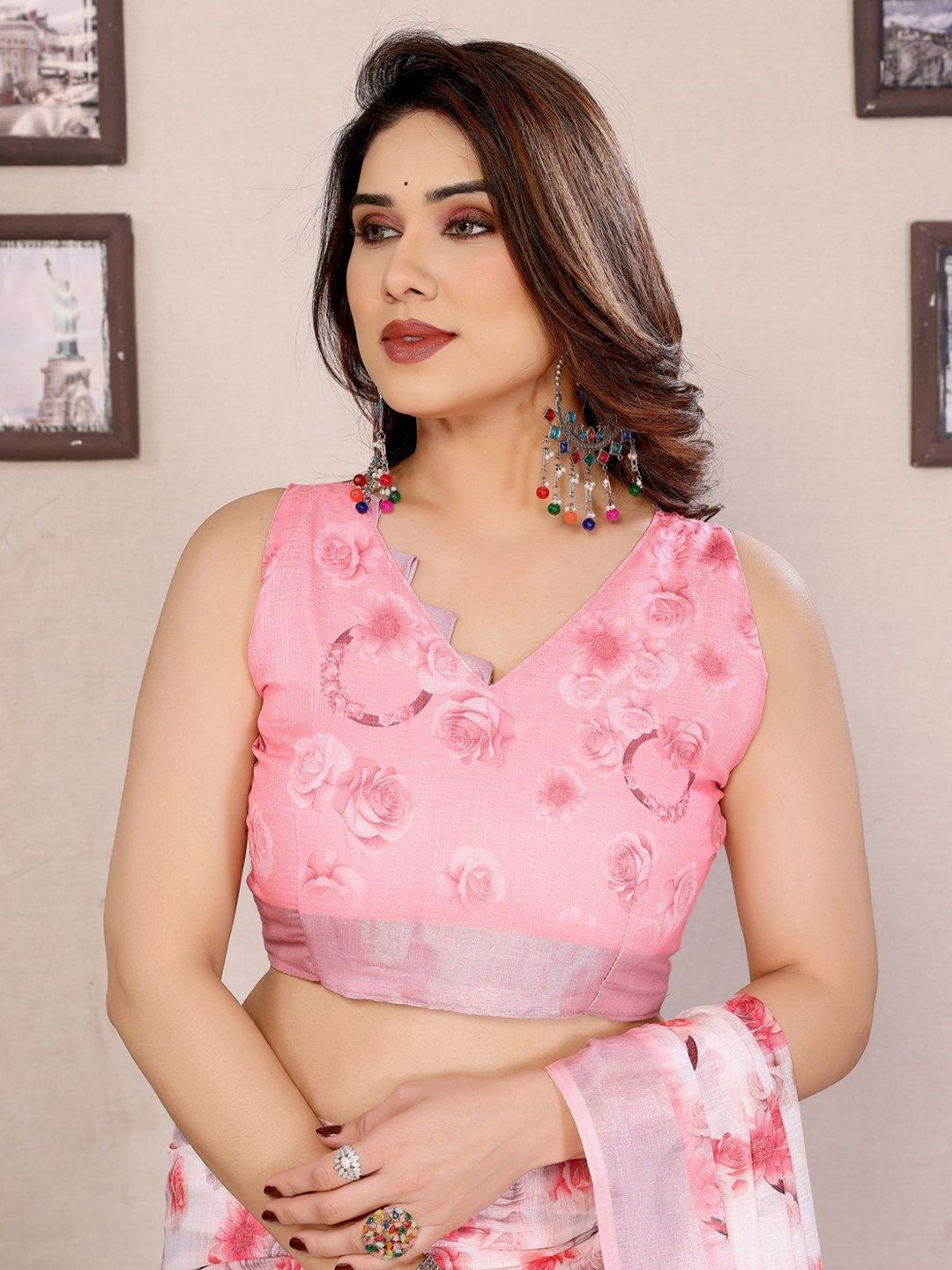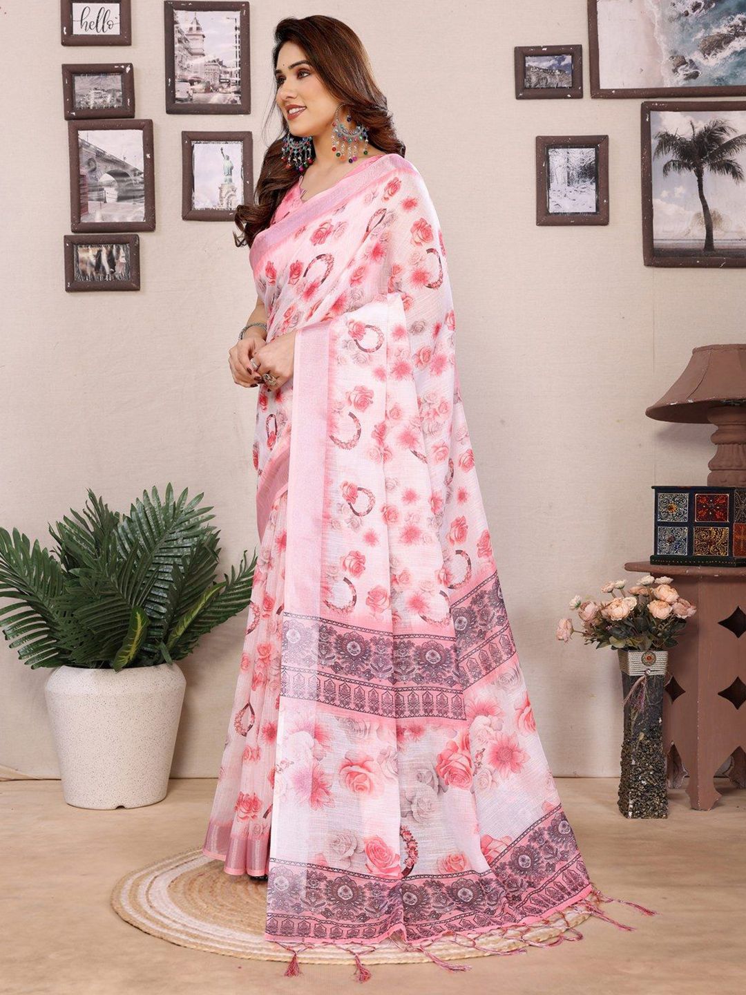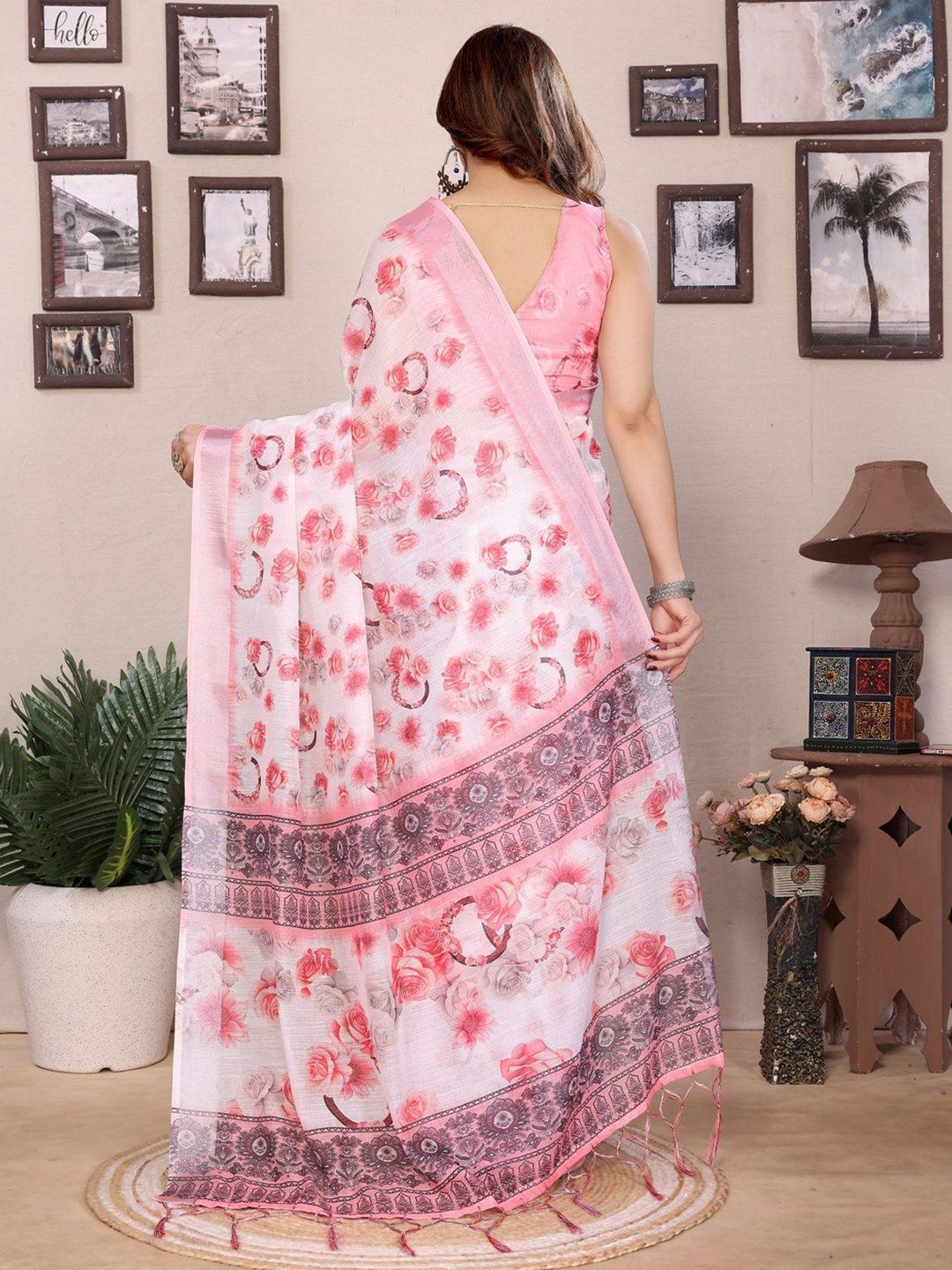 Pure Linen Block Print Saree