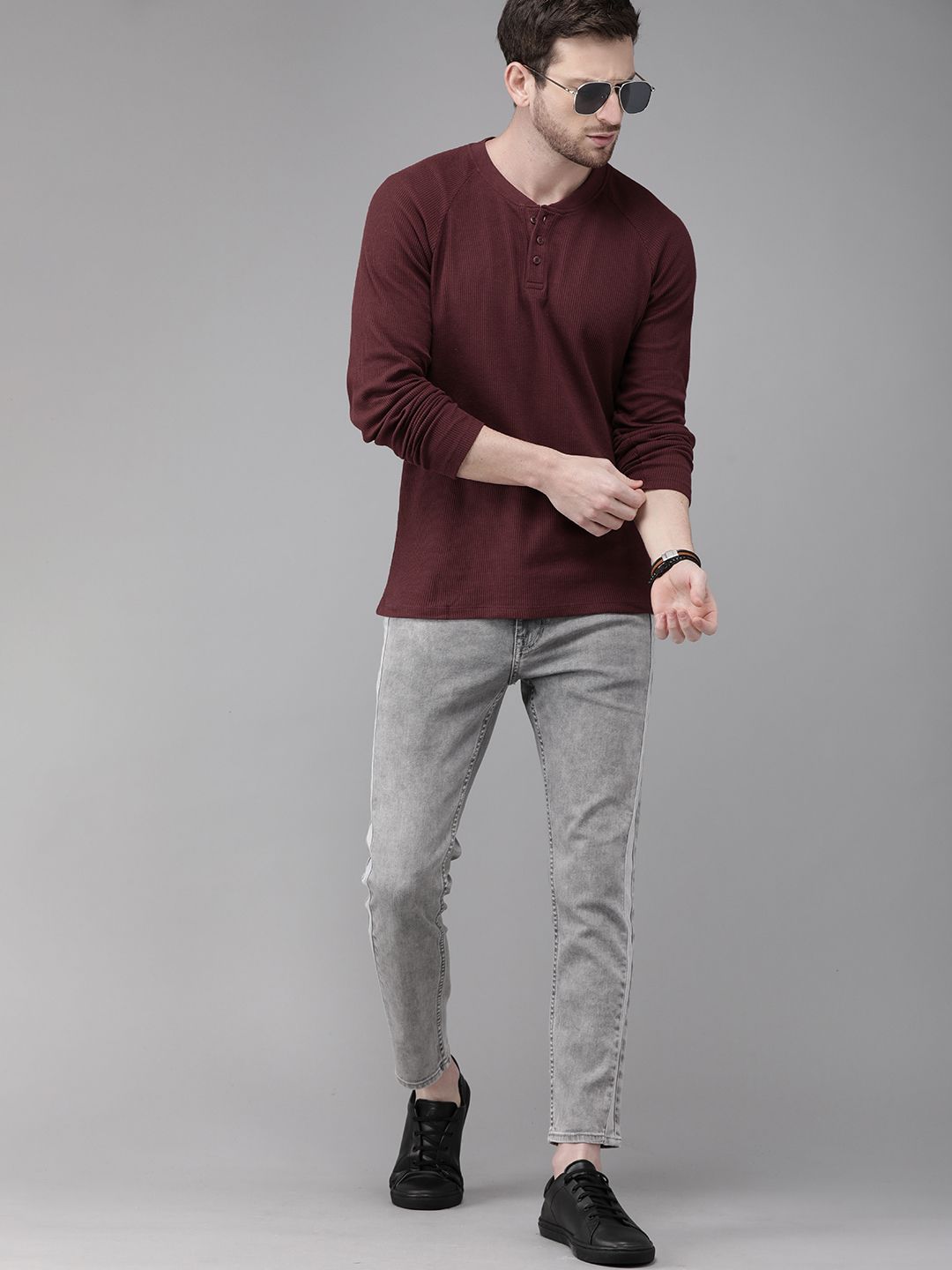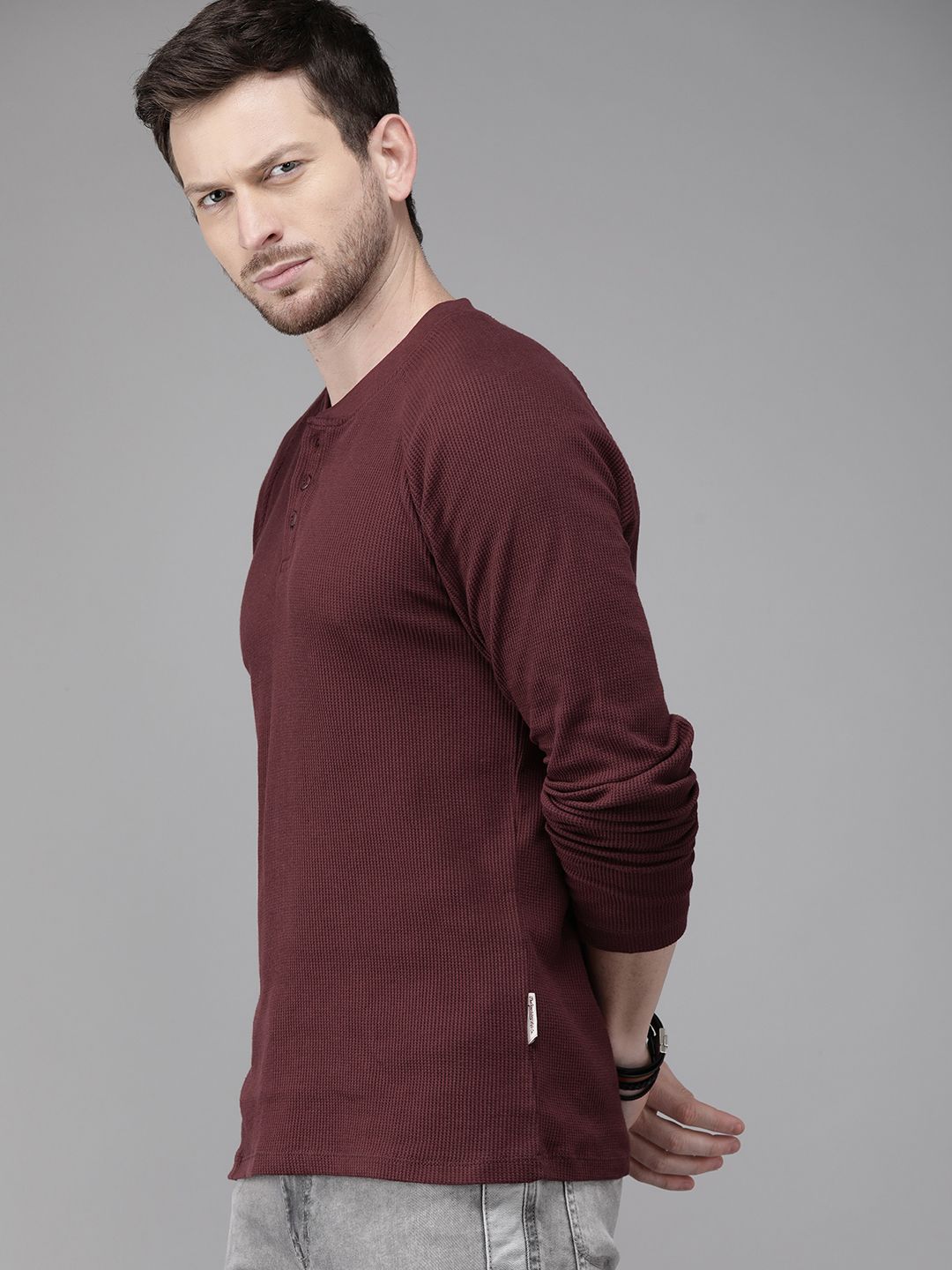 Roadster presents this elegant Maroon Tshirts crafted for Men. Made using premium Pure Cotton, this outfit features a refined Not Available silhouette, a stylish Henley Neck neckline and Long Sleeves. The Not Available hemline and Regular length complete the look. Perfect for Casual wear.
