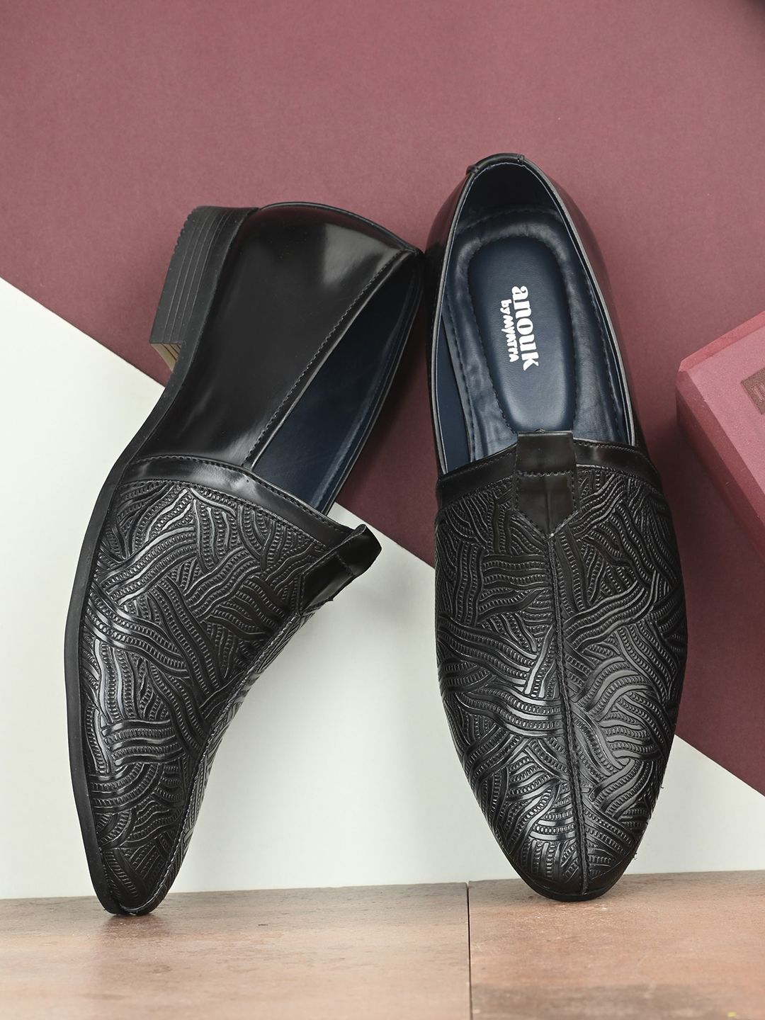 Mast & Harbour Men Black Textured Lightweight Comfort Insole Mesh Knitted Penny Loafers