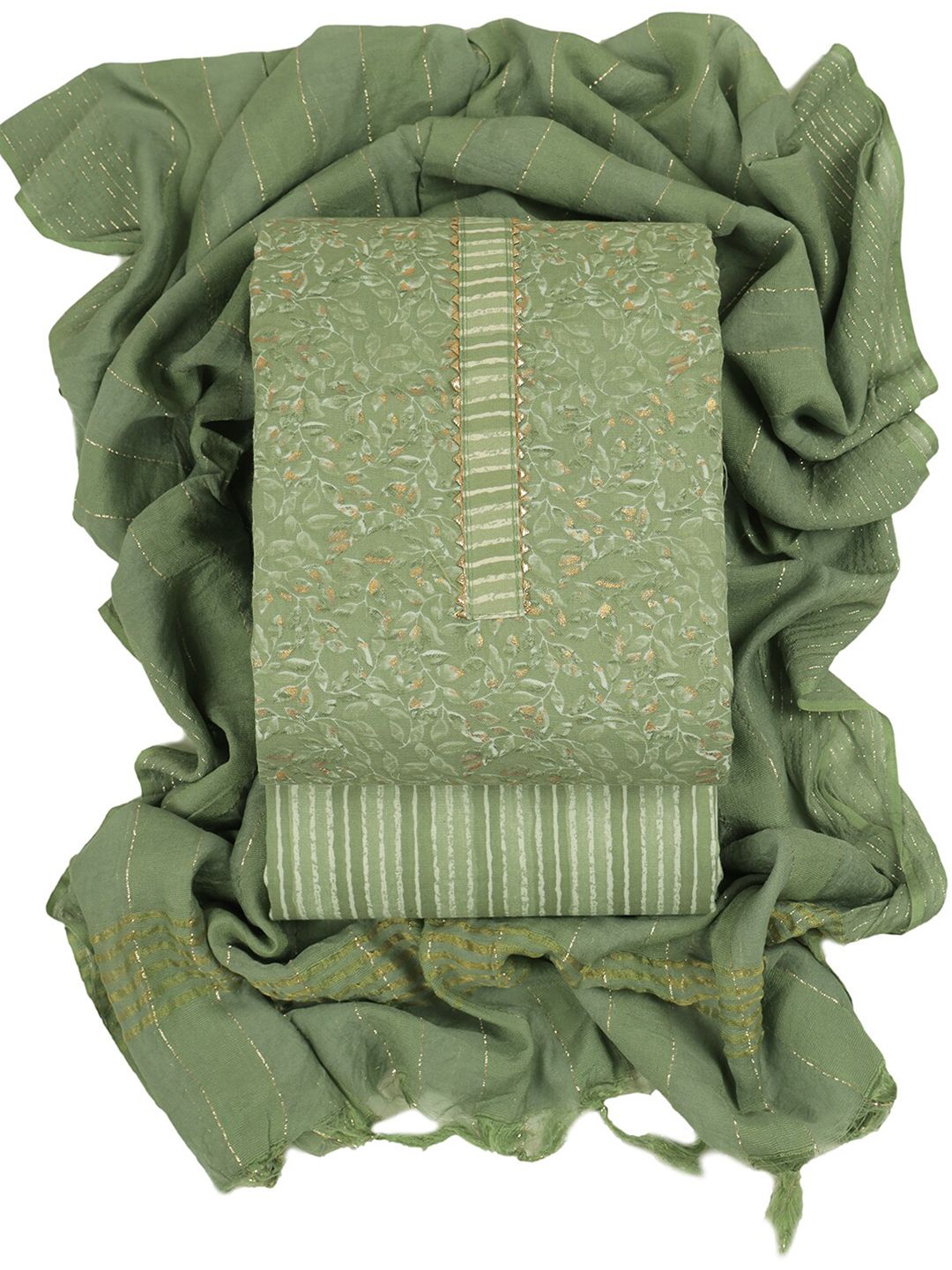 Sun Fashion And Lifestyle presents this elegant Green Dress Material crafted for Women. Made using premium Not Available, this outfit features a refined Not Available silhouette, a stylish Not Available neckline and Not Available. The Not Available hemline and Not Available length complete the look. Perfect for Festive wear.